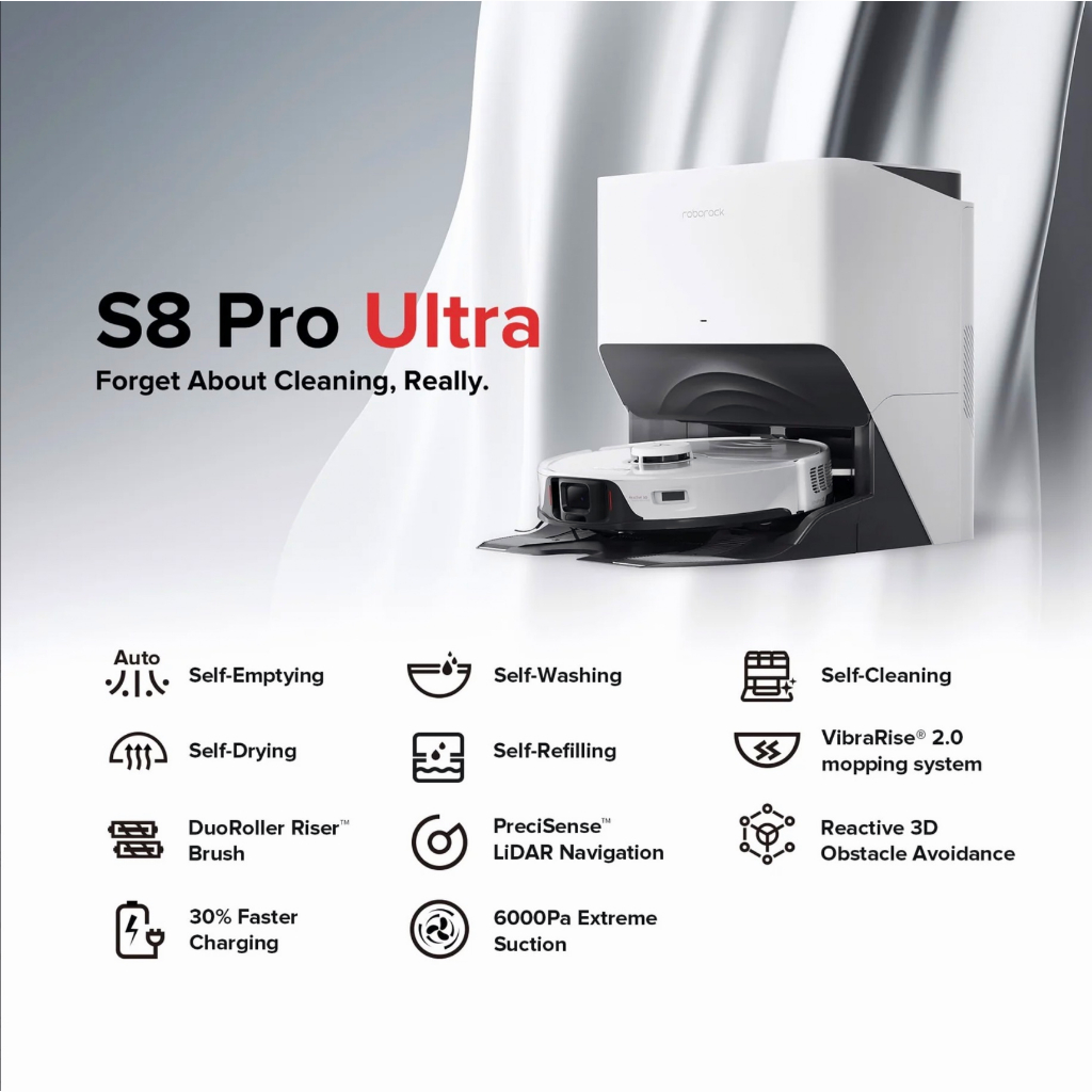 [NEW] Roborock S8 PRO ULTRA Self Drying + Empty Wash Fill 6000Pa HyperSuction Dual Roller Brush Ultrasonic Mopping 3D AI