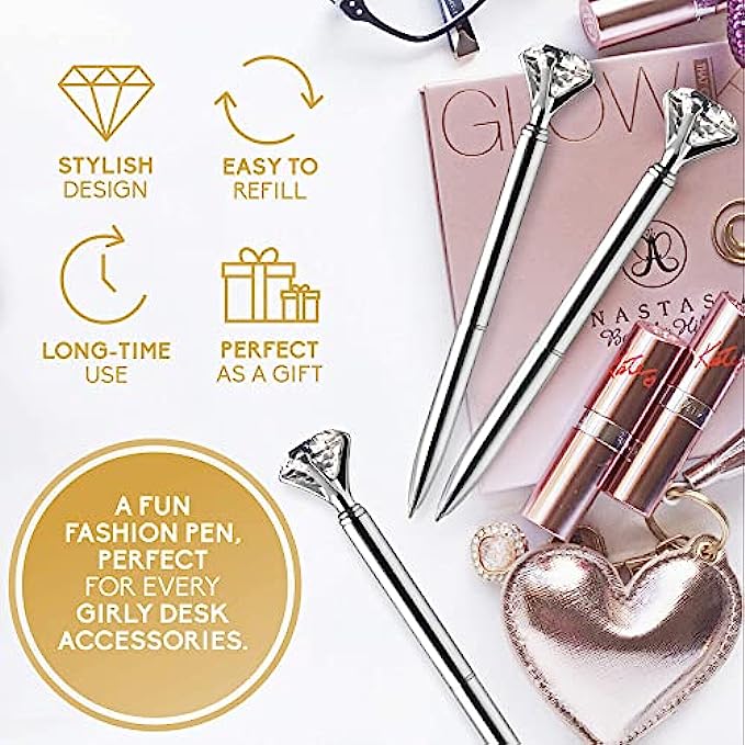 ? SHARE your HAPPINESS! The bright, unique color of your new pens will bring you a lot of attention and compliments. Keep the 8 PCS metallic pens for yourself or make it a nice present to your teen girls, mom, women coworkers, girlfriend, wife, lady boss, female friends, bridesmaid, bride-to-be and other ladies. Strengthen the relationships with your loved ones, show your gratitude with unique and wonderful gifts. The shiny silver finish and the sparkling jewel will put a smile on their face!